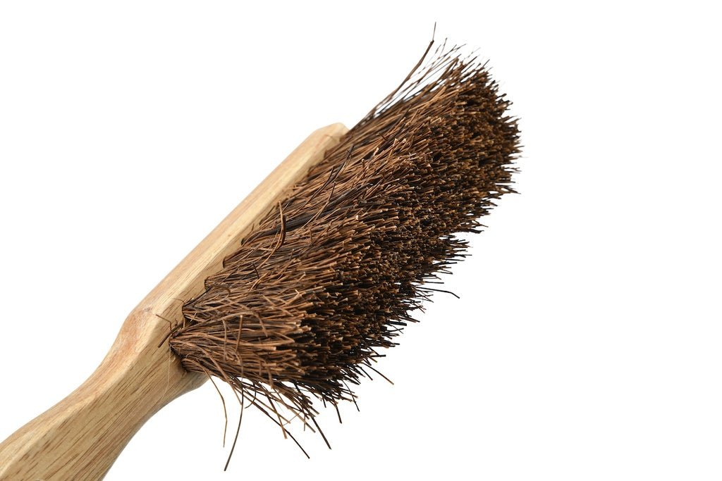 The brush is compact, well balanced, and designed for everyday use around the garden. Its densely packed bassine bristles are made from natural plant fibres that hold their shape, giving firm control when sweeping away compost, soil, or dry leaves. Whether you are cleaning your potting bench, greenhouse shelves, or patio table, each sweep feels steady and satisfying.