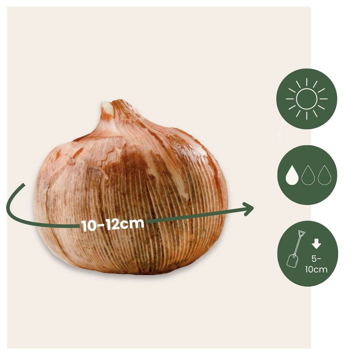 Crocuses are the first sign of spring and are therefore a symbol of renewal and rebirth. With the Crocus Ruby Giant, you can plant the early spring feeling in Autumn and enjoy the beautiful flowers in your garden at the end of winter/beginning of spring. The Ruby Giant has beautiful, deep purple flowers that will bring your garden back to life after a grey winter. You can plant the flowers separately, but it is best to plant them close together in large groups, creating a lovely full flowerbed. Crocuses can reach a height of about 10-12cm.