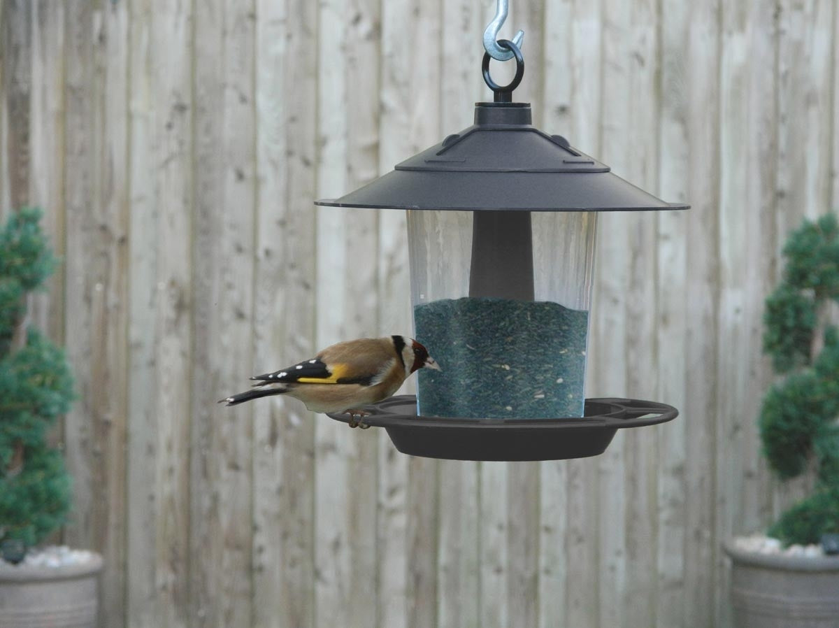 Its swivel top makes refilling super simple, while the domed lid helps keep food dry even in typical British weather. With an all-round perch, there's plenty of room for garden visitors to feed in comfort.