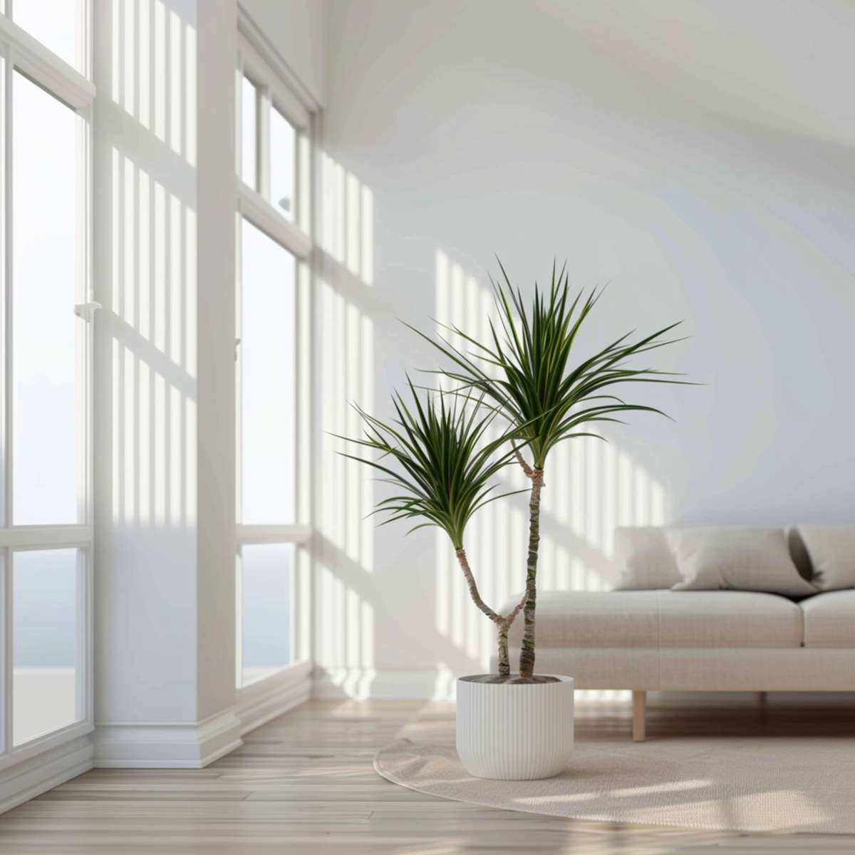 The Dracaena, also known as the dragon tree, is one of the strongest and easiest houseplants to look after. The word Dracaena comes from the Greek wood 'drakaina', which means 'female dragon'. The plant got its name because some Dracaena species have red sap like the Dracaena Draco. This sap was once seen as a dragon's leaf. The Dracaena is the perfect houseplant for people without green fingers. It can survive for weeks without water or care. It is a tropical plant that originates from the rain forests of Asia, Africa and Central America.