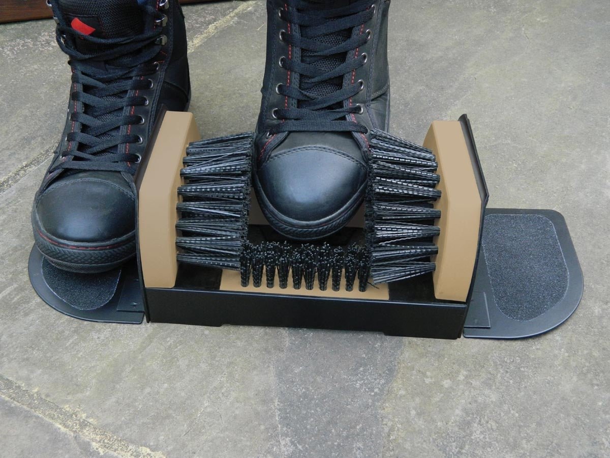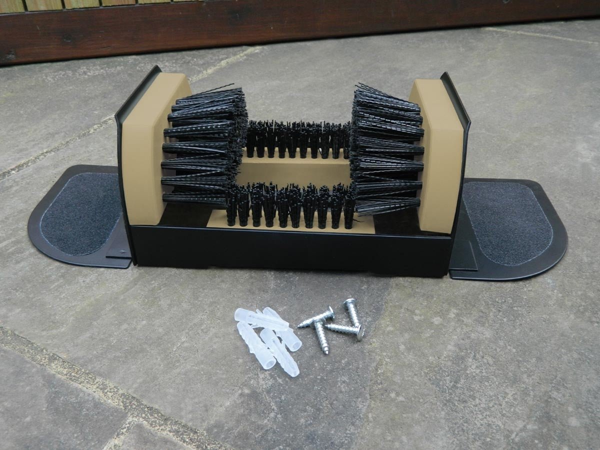 Made from durable coated metal and fitted with sturdy hardwood brushes, it’s built to withstand wet, muddy conditions. When not in use, the foot plates fold up neatly with magnetic pads to keep them tidy.